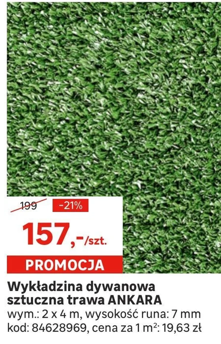 Wykładzina dywanowa sztuczna trawa ANKARA wym.: 2 x 4 m, wysokość runa: 7 mm kod: 84628969.