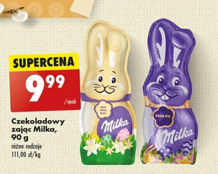 Czekoladowy zając Milka, 90 g różne rodzaje 111,00 zł/kg