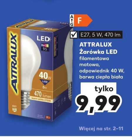 ATTRALUX Żarówka LED filamentowa matowa, odpowiednik 40 W, barwa ciepła biała. E27, 5 W, 470 Im