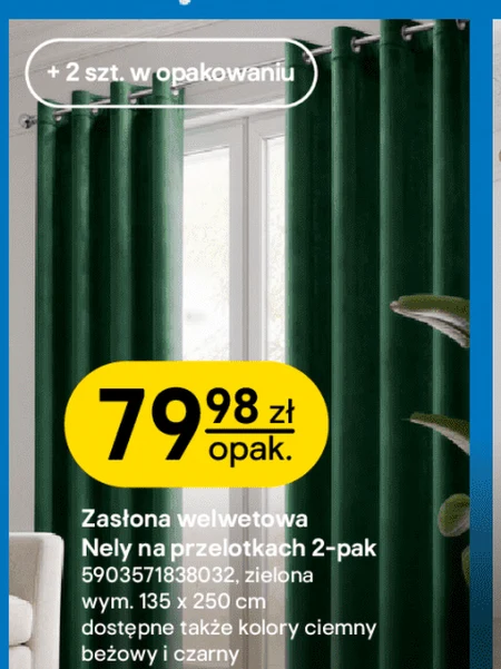 Zasłona welwetowa Nely na przelotkach 2-pak 5903571838032, zielona wym. 135 x 250 cm dostępne także kolory ciemny beżowy i czarny