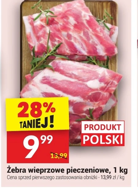 Żebra wieprzowe pieczeniowe, 1 kg Cena sprzed pierwszego zastosowania obniżki - 13,99 zł / kg