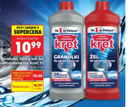 Granulki, 800 g lub żel do udrożniania rur Kret, 1l