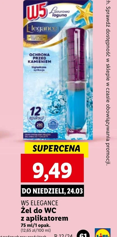 W5 ELEGANCE Żel do WC z aplikatorem 75 ml/1 opak. (12,65 zł/100 ml)