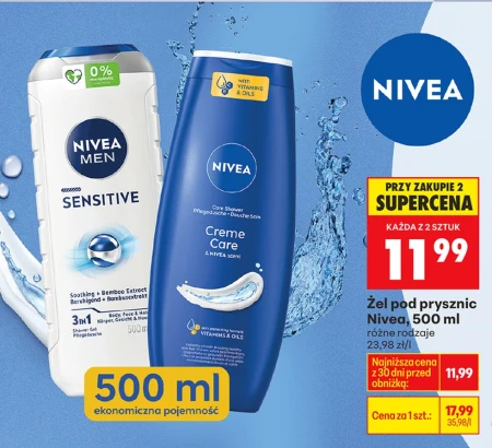 Żel pod prysznic Nivea, 500 ml różne rodzaje 23,98 zł/l