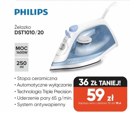 Żelazko DST1010/20 MOC 1400W 250 ml • Stopa ceramiczna • Automatyczne wyłączanie • Technologia Triple Precision • Uderzenie pary 65 g/min. • System antywapienny