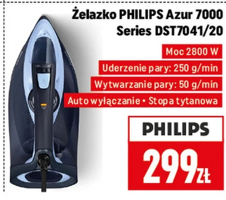 Żelazko PHILIPS Azur 7000 Series DST7041/20 Moc 2800 W Uderzenie pary: 250 g/min Wytwarzanie pary: 50 g/min Auto wyłączanie . Stopa tytanowa