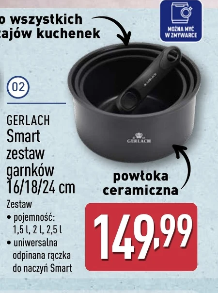 GERLACH Smart zestaw garnków 16/18/24 cm Zestaw • pojemność: 1,5 l, 2 l, 2,5 l • uniwersalna odpinana rączka do naczyń Smart