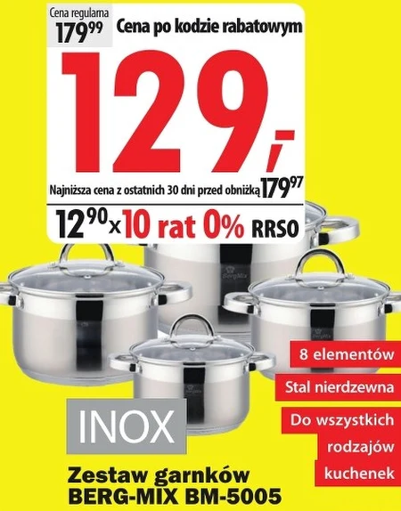 Zestaw garnków BERG-MIX BM-5005 8 elementów Stal nierdzewna Do wszystkich rodzajów kuchenek
