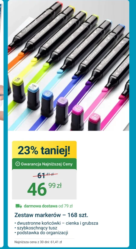 Zestaw markerów - 168 szt. · dwustronne końcówki - cienka i grubsza · szybkoschnący tusz · podstawka do organizacji Najniższa cena z 30 dni: 61,41 zł