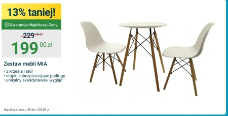 Zestaw mebli MIA · 2 krzesła i stół · stopki zabezpieczające podłogę · unikalny skandynawski wygląd Najniższa cena z 30 dni: 229,00 zł