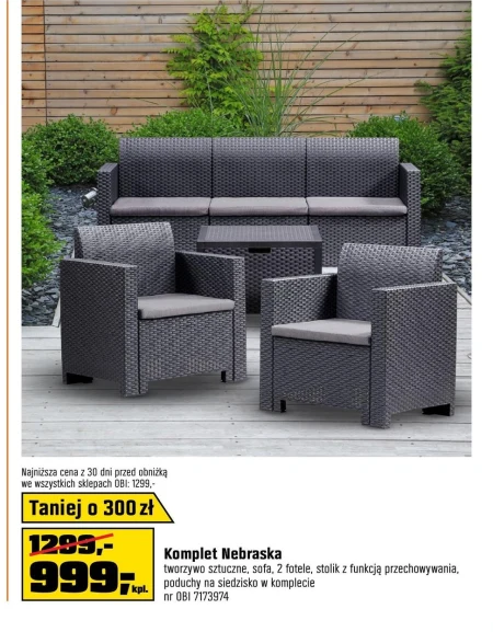 Komplet Nebraska tworzywo sztuczne, sofa, 2 fotele, stolik z funkcją przechowywania, poduchy na siedzisko w komplecie nr OBI 7173974