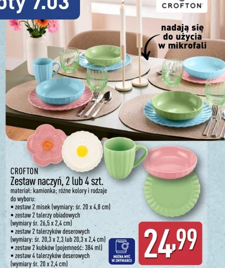 CROFTON Zestaw naczyń, 2 lub 4 szt. materiał: kamionka; różne kolory i rodzaje do wyboru: · zestaw 2 misek (wymiary: śr. 20 x 4,8 cm) · zestaw 2 talerzy obiadowych (wymiary śr. 26,5 x 2,4 cm) · zestaw 2 talerzyków deserowych (wymiary: śr. 20,3 x 2,3 lub 20,3 x 2,4 cm) · zestaw 2 kubków (pojemność: 384 ml) · zestaw 4 talerzyków deserowych [wymiary śr. 20 x 2,4 cm)