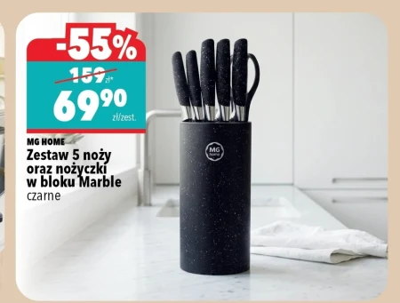 MG HOME Zestaw 5 noży oraz nożyczki w bloku Marble czarne