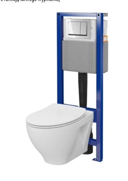 zestaw z miską bezkołnierzową Zestaw C46: stelaż mechaniczny SYSTEM 40, miska bezkołnierzowa, deska duroplastowa SLIM, wolnoopadająca, z funkcją łatwego wypinania, przycisk spłukujący chrom błyszczący