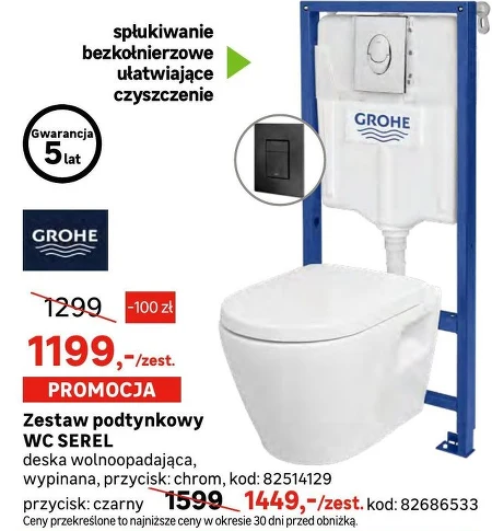 Zestaw podtynkowy WC SEREL deska wolnoopadająca, wypinana, przycisk: chrom, kod: 82514129