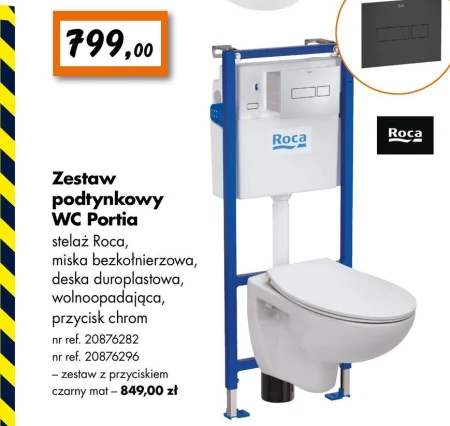 Zestaw podtynkowy WC Portia stelaż Roca, miska bezkołnierzowa, deska duroplastowa, wolnoopadająca, przycisk chrom nr ref. 20876282 nr ref. 20876296 - zestaw z przyciskiem czarny mat - 849,00 zł