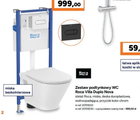 Zestaw podtynkowy WC Roca Villa Duplo Nova stelaż Roca, miska, deska duroplastowa, wolnoopadająca, przycisk kolor chrom nr ref. 20705223 nr ref. 20705230 - z przyciskiem czarny mat - 999,00 zł