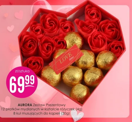 AURORA Zestaw Prezentowy 12 płatków mydlanych w kształcie różyczek (4g) 8 kul musujących do kąpieli (30g)