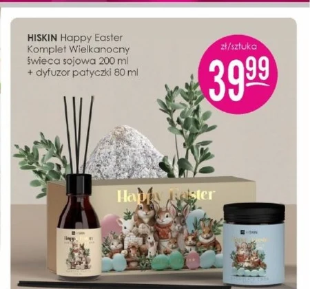 HISKIN Happy Easter Komplet Wielkanocny świeca sojowa 200 ml + dyfuzor patyczki 80 ml