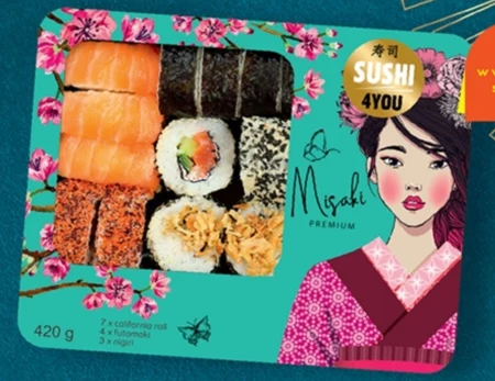 Zestaw sushi Misaki, 420 g 42,83 zł/kg Cena przed obniżką: 21,99 zł/opak., 18% mniej Cena regularna: 21,99 zł/opak. (52,36 zł/kg), 18% taniej
