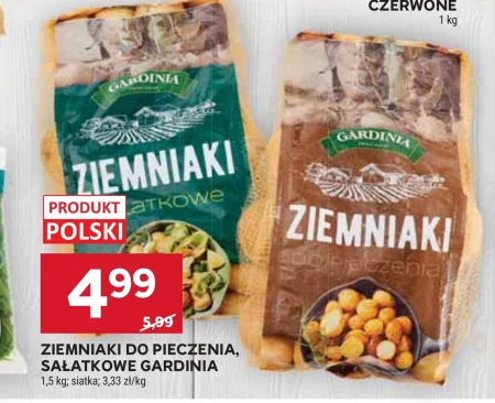 Ziemniaki do pieczenia, sałatkowe Gardinia w Stokrotce kosztują teraz 4,99 zł za 1,5 kg. Aktualna cena to 3,33 zł/kg, co stanowi obniżkę w porównaniu z ceną regularną. Ziemniaki Gardinia idealnie nadają się do przygotowania tradycyjnych dań, takich jak pieczone ziemniaki czy sałatki. Promocja w Stokrotce pozwala zaoszczędzić na podstawowych produktach spożywczych.