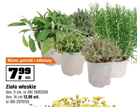 Zioła włoskie są dostępne w OBI w doniczkach o średnicy 9 cm pod numerem OBI 5880208 w cenie 7,99 zł za sztukę, a także w doniczkach o średnicy 14 cm pod numerem OBI 2970150 w cenie 13,99 zł za sztukę. Rośliny te to mieszanka różnych gatunków i odmian, idealna do aromatyzowania potraw kuchni włoskiej, takich jak pizza, pasta czy sosy. Zioła włoskie uprawiane w domu to również świetny sposób na zawsze mieć pod ręką świeże, intensywnie pachnące składniki. To doskonała okazja, by wzbogacić swoją kuchnię o naturalne smaki i zapachy.