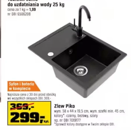 Zlew Piko wym. 58 x 44 x 19,5 cm, wym. szafki min. 45 cm, kolory: czarny, beżowy, szary. Najniższa cena z 30 dni przed obniżką we wszystkich sklepach 08I: 359 zł.