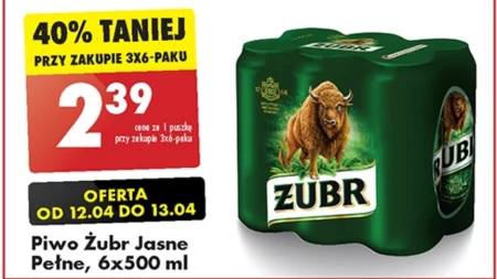 Żubr Piwo jasne 3 l (6 x 0,5 l) - Oferta archiwalna
