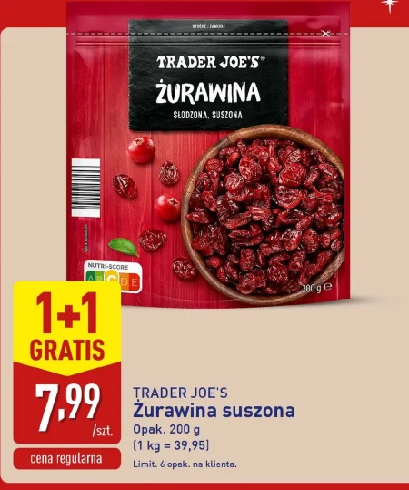 TRADER JOE'S Żurawina suszona Opak. 200 g (1 kg = 39,95] Limit: 6 opak. na klienta.