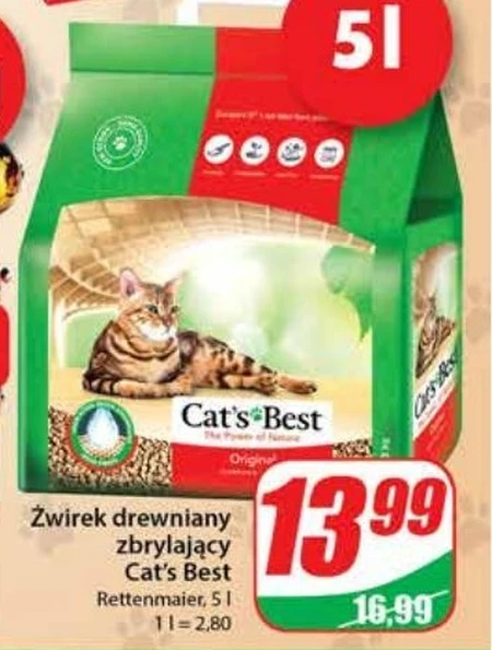 Żwirek zbrylający Cat's Best, pojemność 5 litrów.