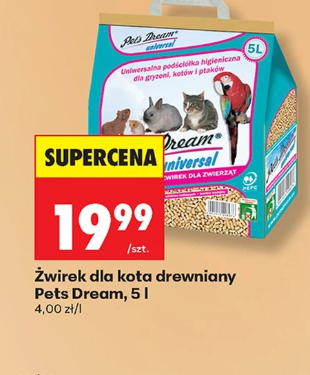 Żwirek dla kota drewniany Pets Dream, 5 1 4,00 zł/l