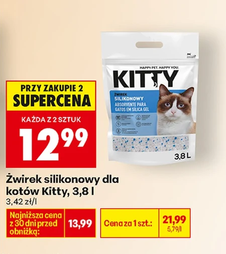 Żwirek silikonowy dla kotów Kitty, 3,8 l 3,42 zł/l