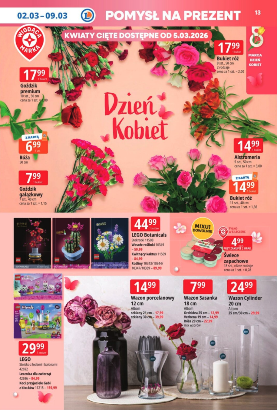 8 березня - це день, коли ніхто не дивиться на ціну - і це добре. У сьогоднішній газеті E.Leclerc ви знайдете квіти, вази та подарунки, які вражають, не шукаючи компромісів. Букет троянд за £17,99, гвоздики преміум-класу, альстромерії та, для тих, хто мислить нестандартно, набори LEGO Botanicals, які не зів'януть через тиждень. Пропозиція діє з 2 по 9 березня 2026 року, а зрізані квіти надійдуть у магазини з 5 березня.