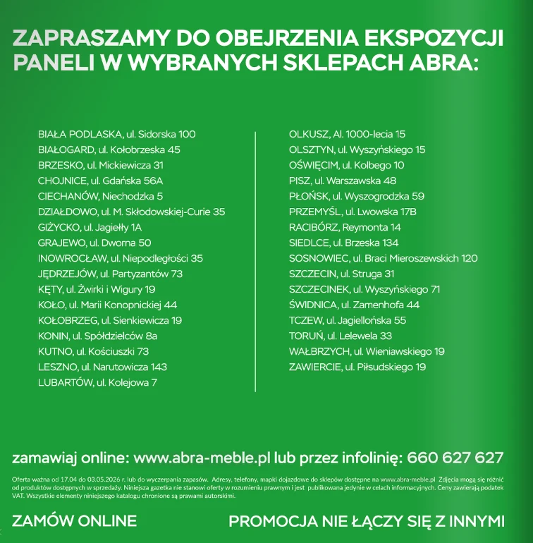 Скористайтеся акціями в Abra від 2026-04-17 до 2026-05-03. В акційній ціні ви знайдете такі товари: