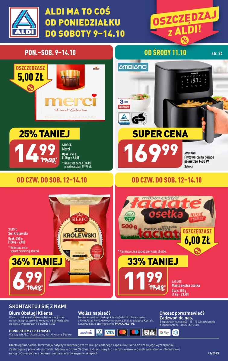 Перегляньте акційну газетку Aldi. Привабливі пропозиції дійсні з 2023-10-09 до 2023-10-14. Заощаджуйте на: