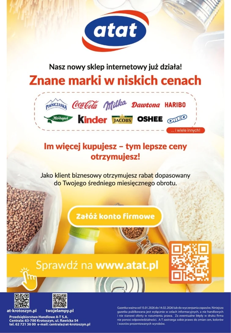 Нові пропозиції в At. Перевірте привабливі ціни в рекламній газетці, яка діє з 2026-01-15 до 2026-02-14. Дивіться акції на: