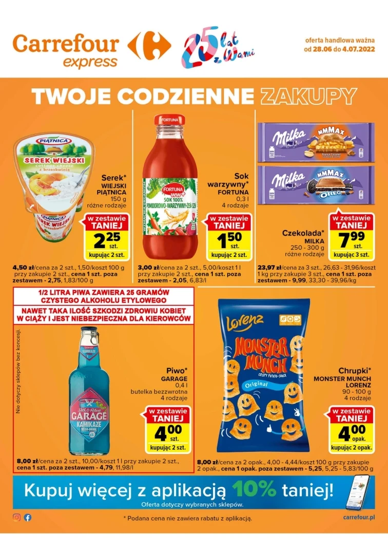 Не пропустіть акції в Carrefour Express! Приголомшливі знижки в промо-газетці з 2022-06-28 до 2022-07-04. Акції на такі товари, як: