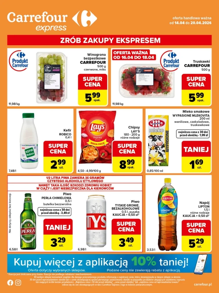 Скористайтеся знижками мережі Carrefour Express. Акційна газетка діє з 2026-04-14 до 2026-04-20. На ці продукти варто звернути увагу: