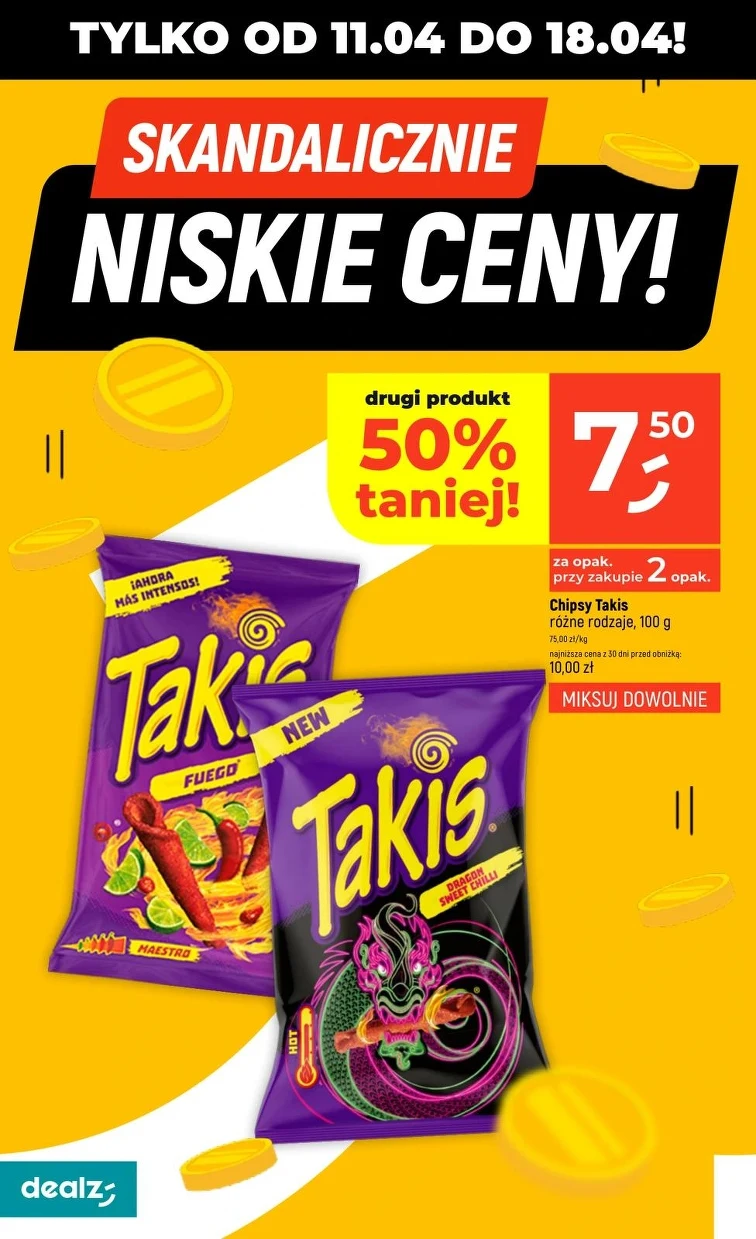 Ознайомтеся з акціями в Dealz. В рекламній газетці з 2026-04-11 до 2026-04-18 представлені чудові акції! Ось ці продукти купите дешевше:
