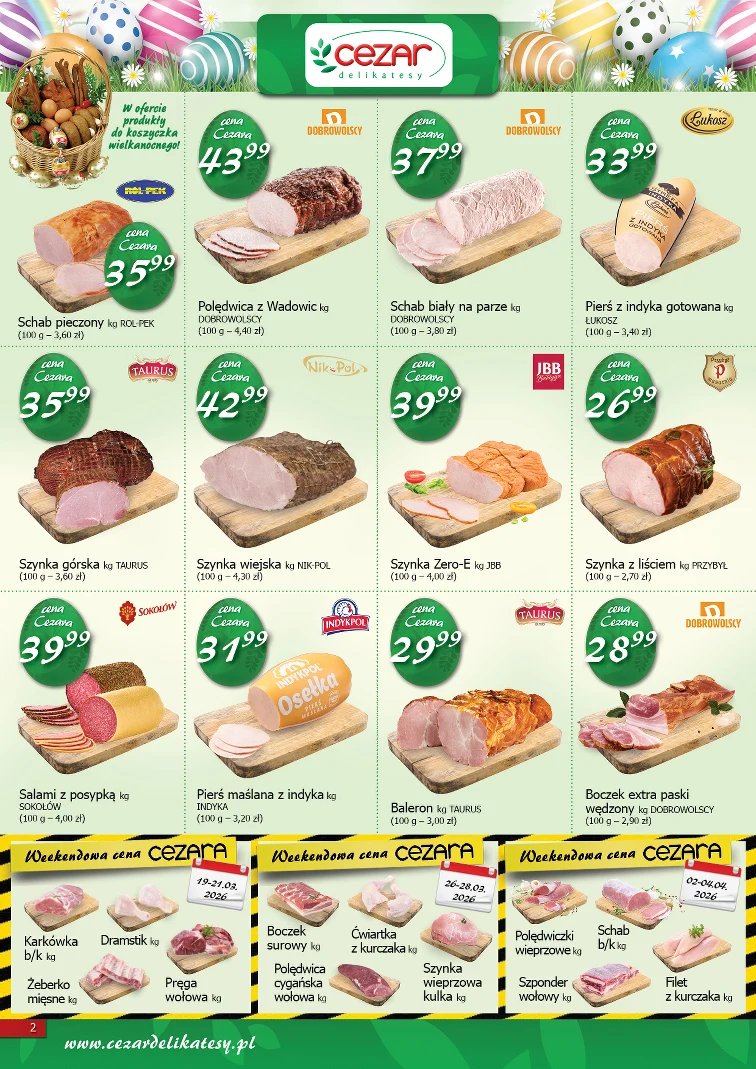 З 2026-03-19 до 2026-04-04 у газеті Delikatesy CEZAR діють акції на такі товари:
