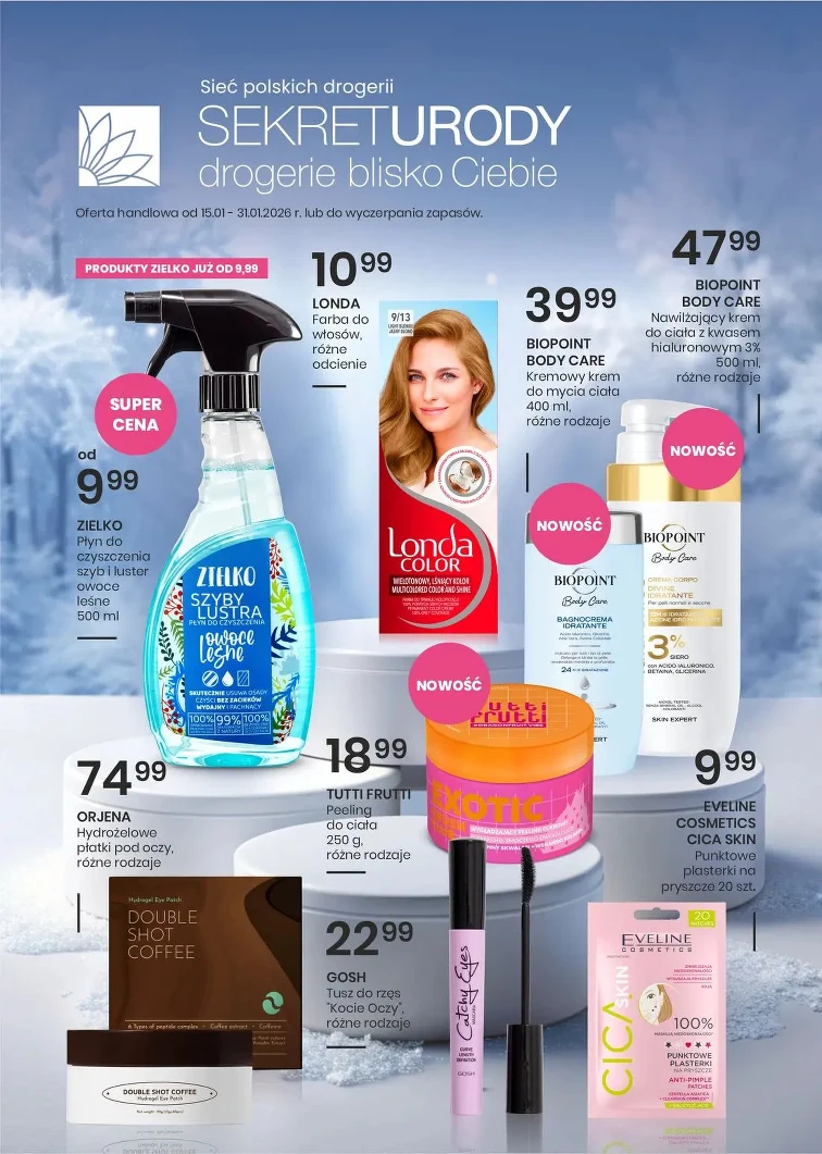 Чи знаєте ви, які акції можна знайти в Drogerie Sekret Urody? Перегляньте акційну газетку з 2026-01-15 до 2026-01-31. За низькими цінами ви можете придбати: