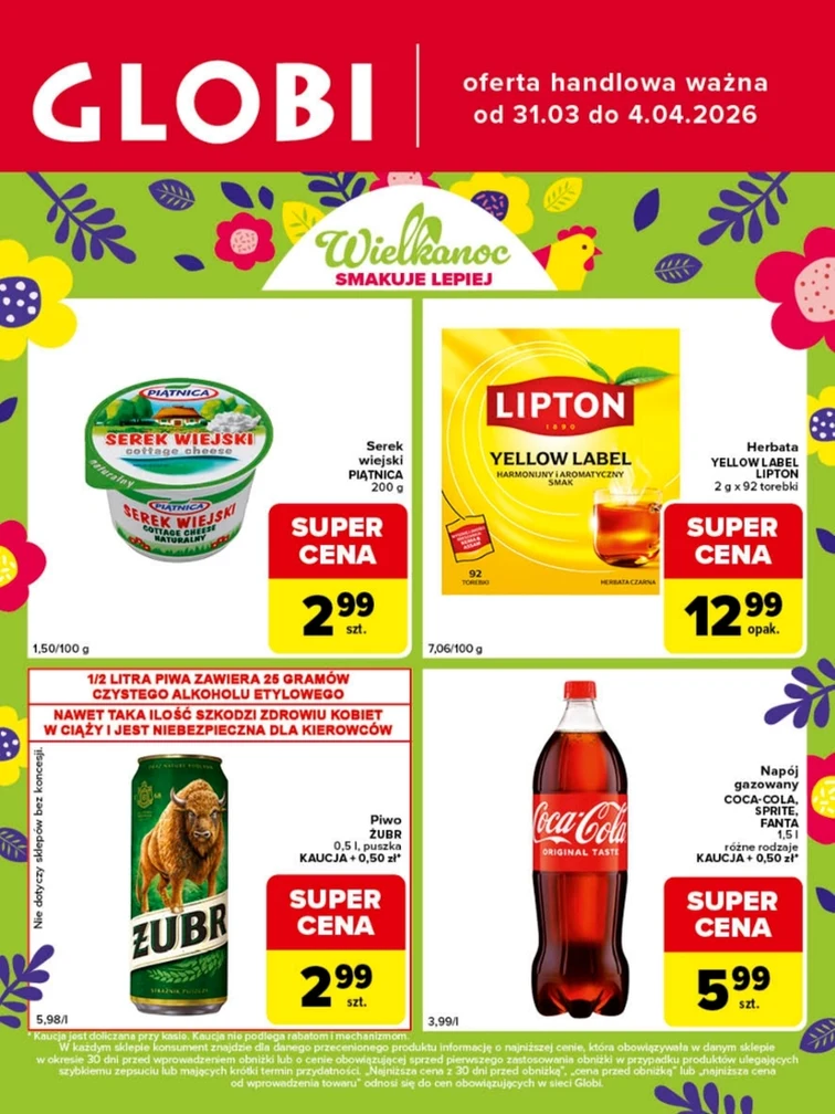 У новій газетці Globi що діє з 2026-03-31 до 2026-04-04 представлені акції на такі товари: