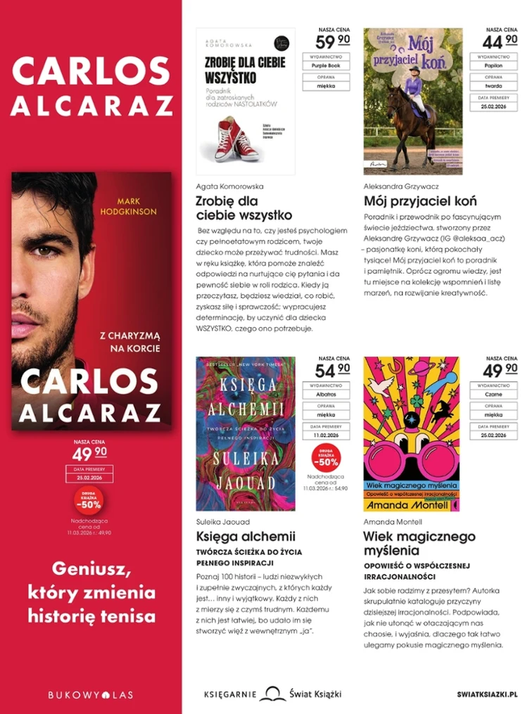Переглядайте газетку Księgarnie Świat Książki, акції діють з 2026-02-11 до 2026-03-10. За вигідною ціною ви придбаєте: