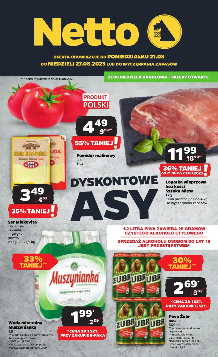 Привабливі ціни в Netto. Ви побачите всі знижки в рекламній газетці з 2023-08-21 до 2023-08-27. Варто перевірити ці дешеві товари: