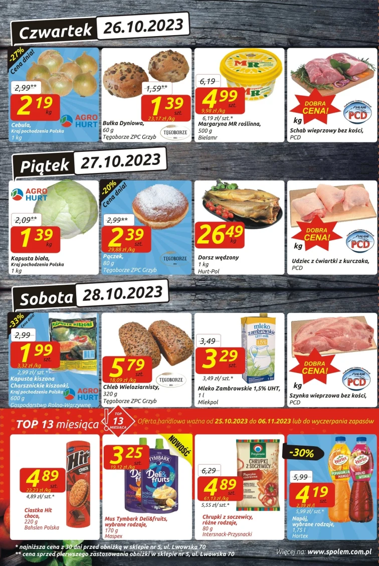 Скористайтеся знижками мережі PSS Społem Nowy Sącz. Акційна газетка діє з 2023-10-25 до 2023-11-06. На ці продукти варто звернути увагу: