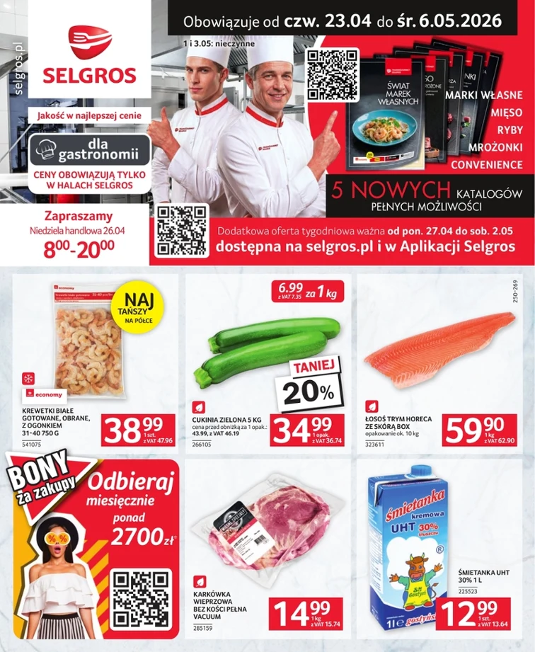 Не пропустіть акції в Selgros Cash&Carry! Приголомшливі знижки в промо-газетці з 2026-04-23 до 2026-05-06. Акції на такі товари, як: