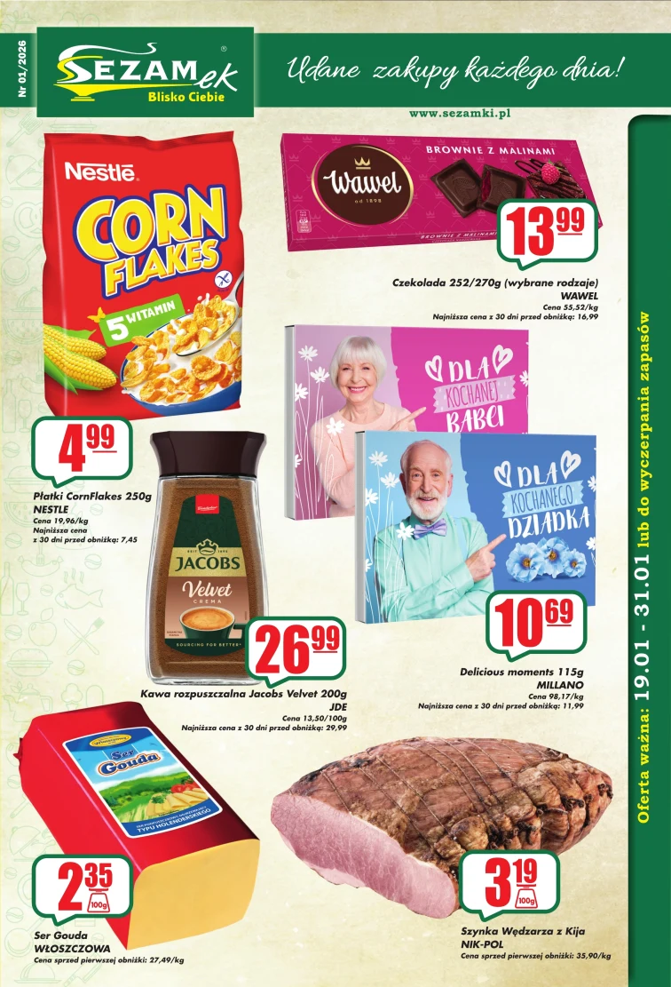 Знижки в рекламній газетці Sezamek. Акція діє від 2026-01-19 до 2026-01-31. За привабливою ціною ви отримаєте:
