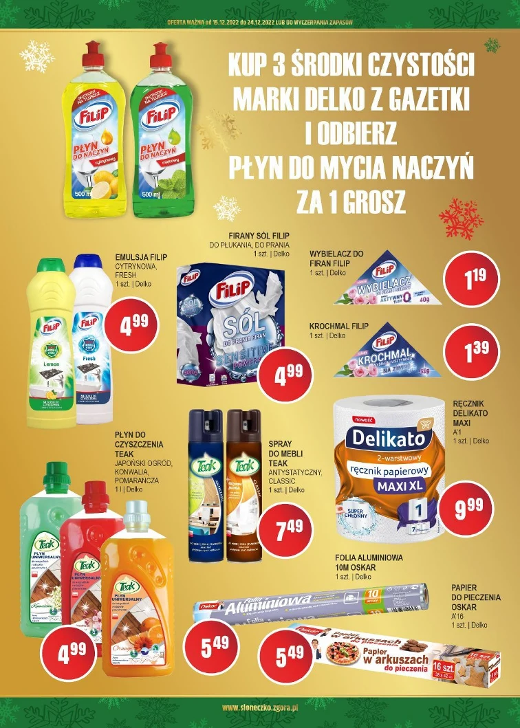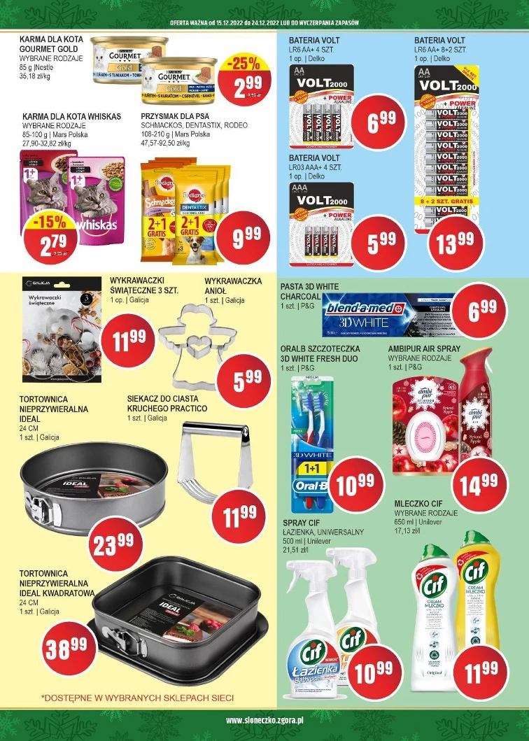 Незвичайні акції в промо-газетці Słoneczko. Пропозиція діє з 2022-12-15 до 2022-12-24. Ви знайдете знижки на такі товари, як: