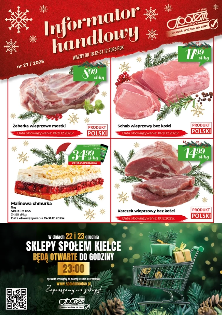 Шукаєте товар за привабливою ціною? Перегляньте останню газетку мережі Społem Kielce, яка діє з 2025-12-18 до 2025-12-31. Ви знайдете акції на такі товари, як: