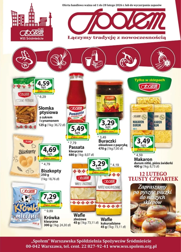 Ознайомтеся з акційною пропозицією Społem WSS Śródmieście, яка діє від 2026-02-01 до 2026-02-28. У рекламній газетці ви знайдете акції на: